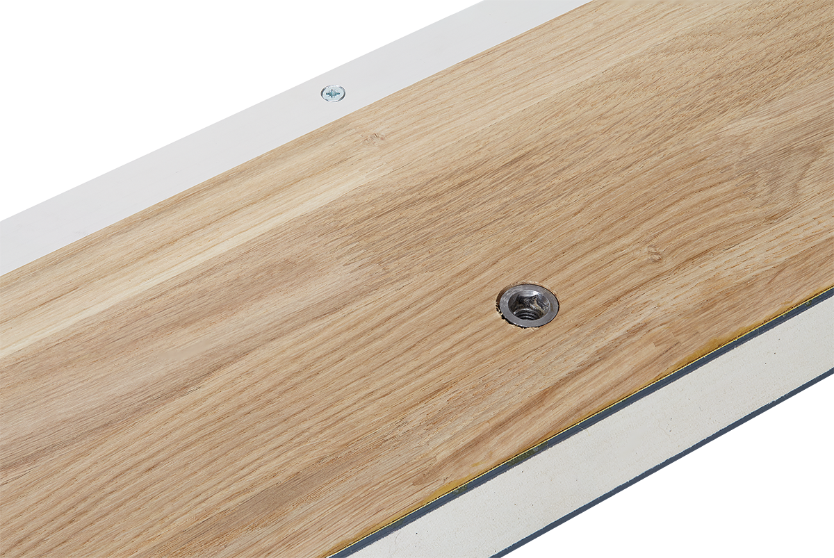 - Band constructie uitgevoerd in aluminium en afgewerkt in zwart houtnerf duurzaam vinyl