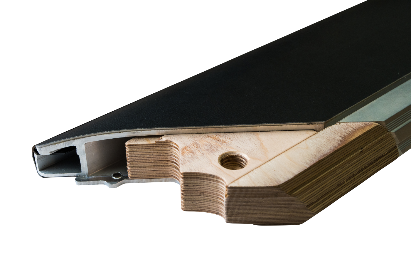 - Band constructie uitgevoerd in aluminium en afgewerkt in zwart houtnerf duurzaam vinyl